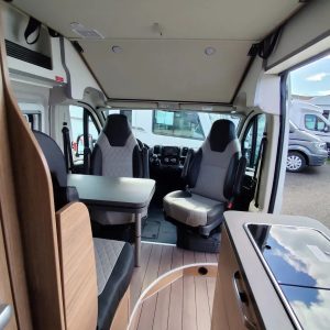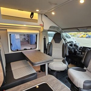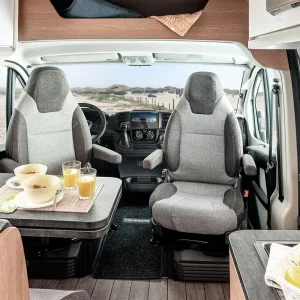 Esta autocaravana perfilada acomoda confortavelmente 4 pessoas, tanto para dormir como para viajar. Dispõe de 2 camas de casal, incluindo uma mesa..
